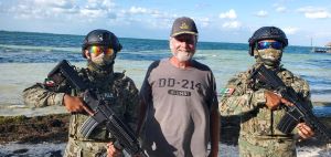 | The Rock chats up a stranger | Big John and Mike look on aghast |